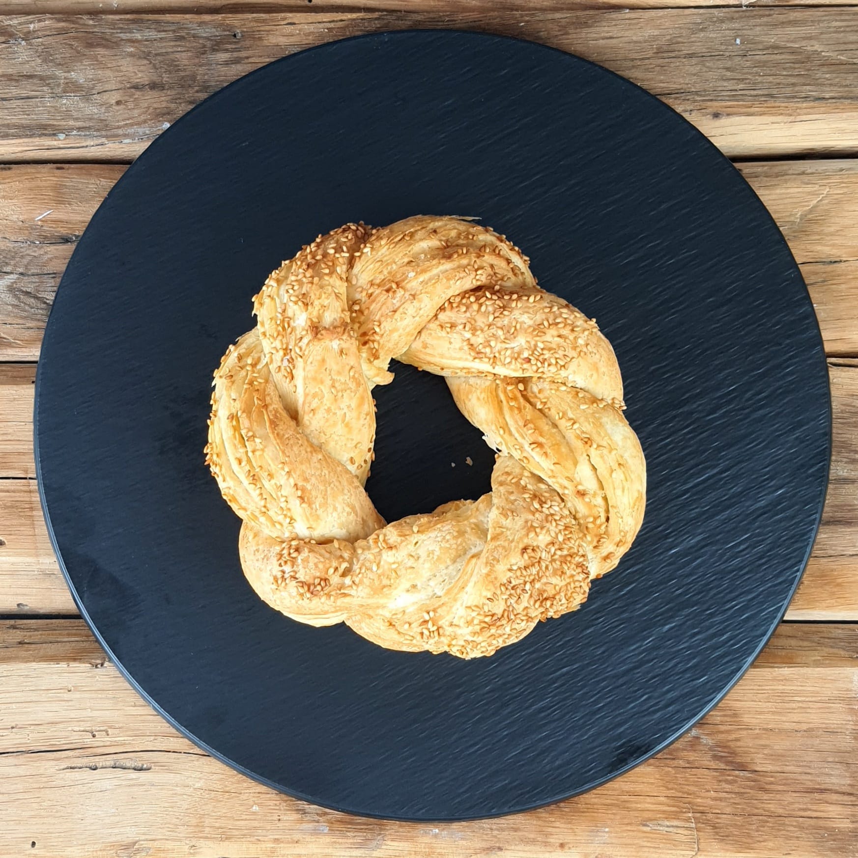 Ingrediente: Făină albă de grâu de tip 550, apă, sare iodată, seminţe de susan.